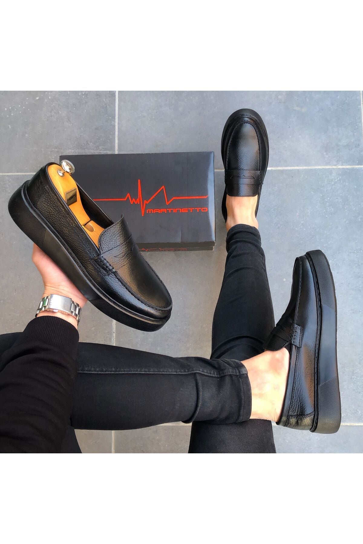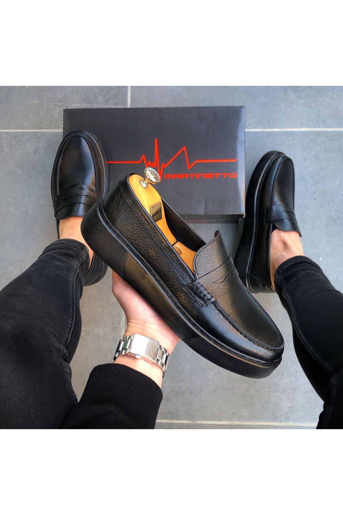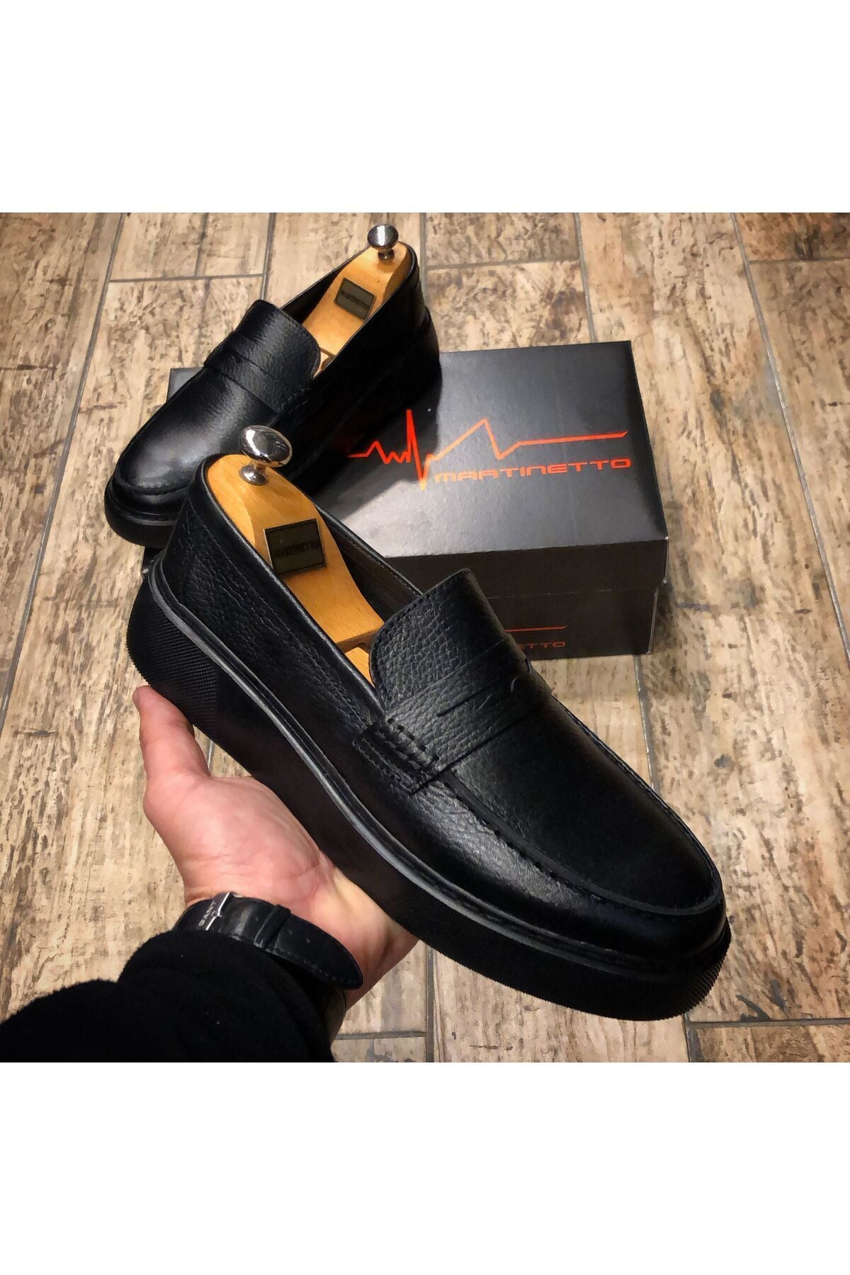 MARKA : MARTİNETTO ; DIŞ METERYAL : % 100 HAKİKİ DERİ ; İÇ METERYAL : ANTİBAKTERİYEL SUNİ DERİ ; TABAN TEKNOLOJİSİ : Vücüt ağırlığından gelen basıncı dengeli bir şekilde absorbe eden EVA malzeme ; TABAN YÜKSEKLİĞİ : BURUN KISMI 2,5 CM TOPUK KISMI 4 CM ; ORTALAMA AĞIRLIK : 850 gr ( 1 çift kutu dahil) ; Modaya yön veren tasarımcılarımızın çizimlerini ,birbirinden yetenekli ayakkabı ustalarının el emeği ile Türkiye'de üretilmiştir. ; %100 el imalatıdır ÜRETİM YERİ : TÜRKİYE Görseldeki erkek mankenin ayak bedeni 40 numaradır. ; Sade çizgileri ve zarif dokulu yapısıyla jean, şort , klasik pantolon, takım elbise ve aklınıza gelebilecek hemen hemen bütün giyim parçaları ile uyum sağlayarak stilinizi her ortamda mükemmel hale getirir ;