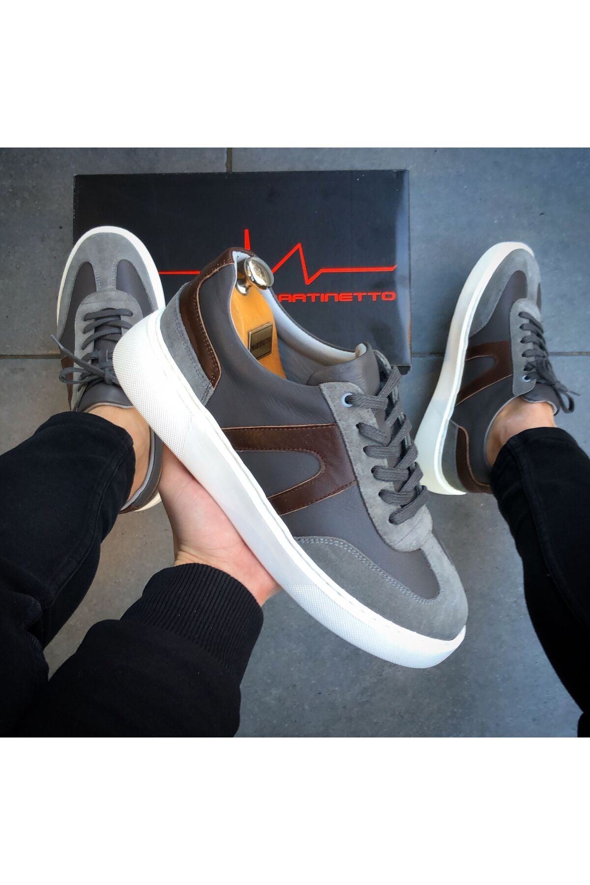 MARKA : MARTİNETTO ; DIŞ METERYAL : % 100 HAKİKİ DERİ HAKİKİ SÜET DETAYLI ; İÇ METERYAL : % 100 HAKİKİ DERİ ; TABAN TEKNOLOJİSİ : Vücüt ağırlığından gelen basıncı dengeli bir şekilde absorbe eden EVA malzeme ; TABAN YÜKSEKLİĞİ : BURUN KISMI 2,5 CM TOPUK KISMI 4 CM ; ORTALAMA AĞIRLIK : 850 gr ( 1 çift kutu dahil) ; Modaya yön veren tasarımcılarımızın çizimlerini ,birbirinden yetenekli ayakkabı ustalarının el emeği ile Türkiye'de üretilmiştir. ; %100 el imalatıdır ; ÜRETİM YERİ : TÜRKİYE Görseldeki erkek mankenin ayak bedeni 40 numaradır. ; Sade çizgileri ve zarif dokulu yapısıyla jean, şort , klasik pantolon, takım elbise ve aklınıza gelebilecek hemen hemen bütün ; giyim parçaları ile uyum sağlayarak stilinizi her ortamda mükemmel hale getirir ;