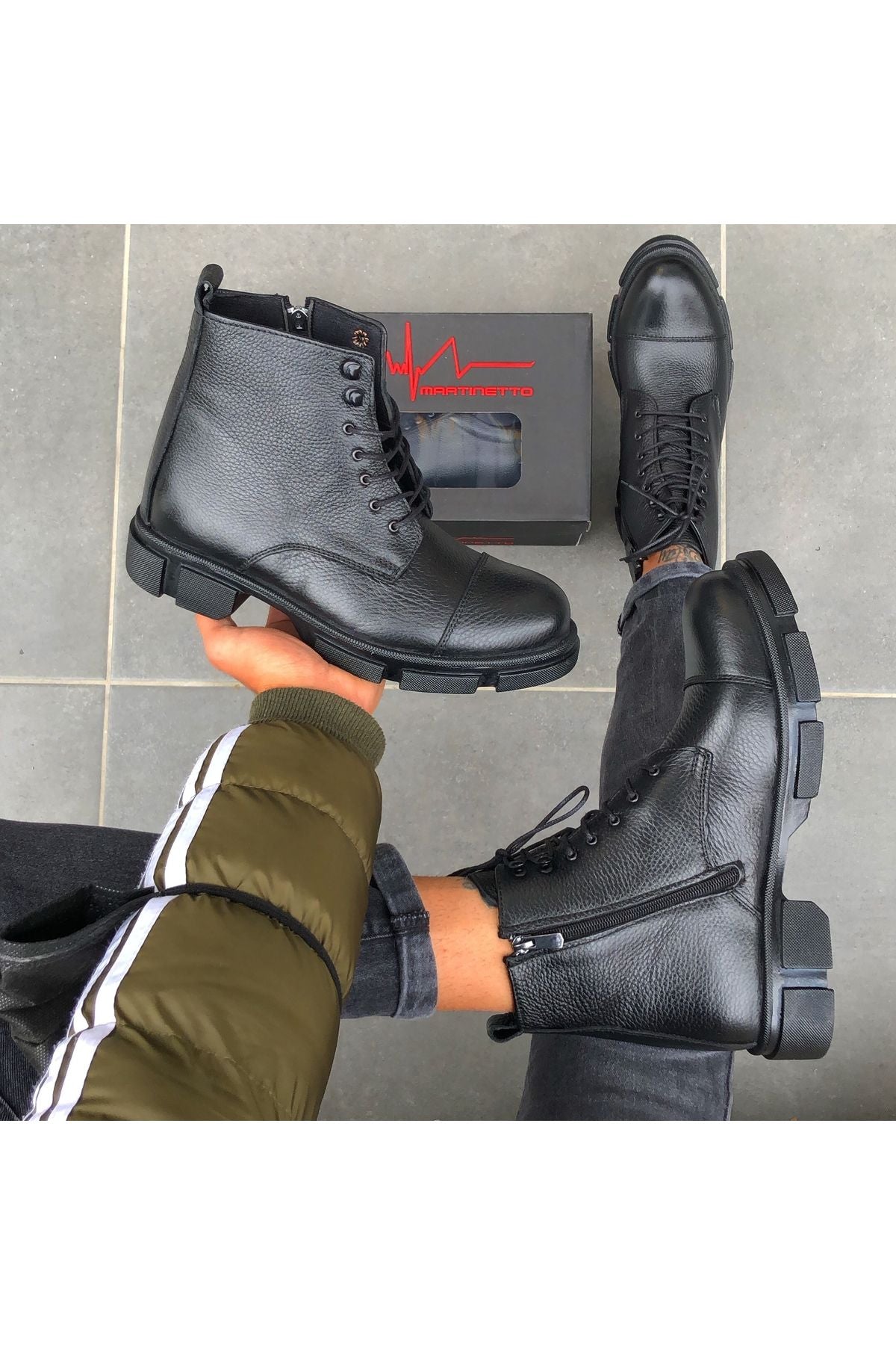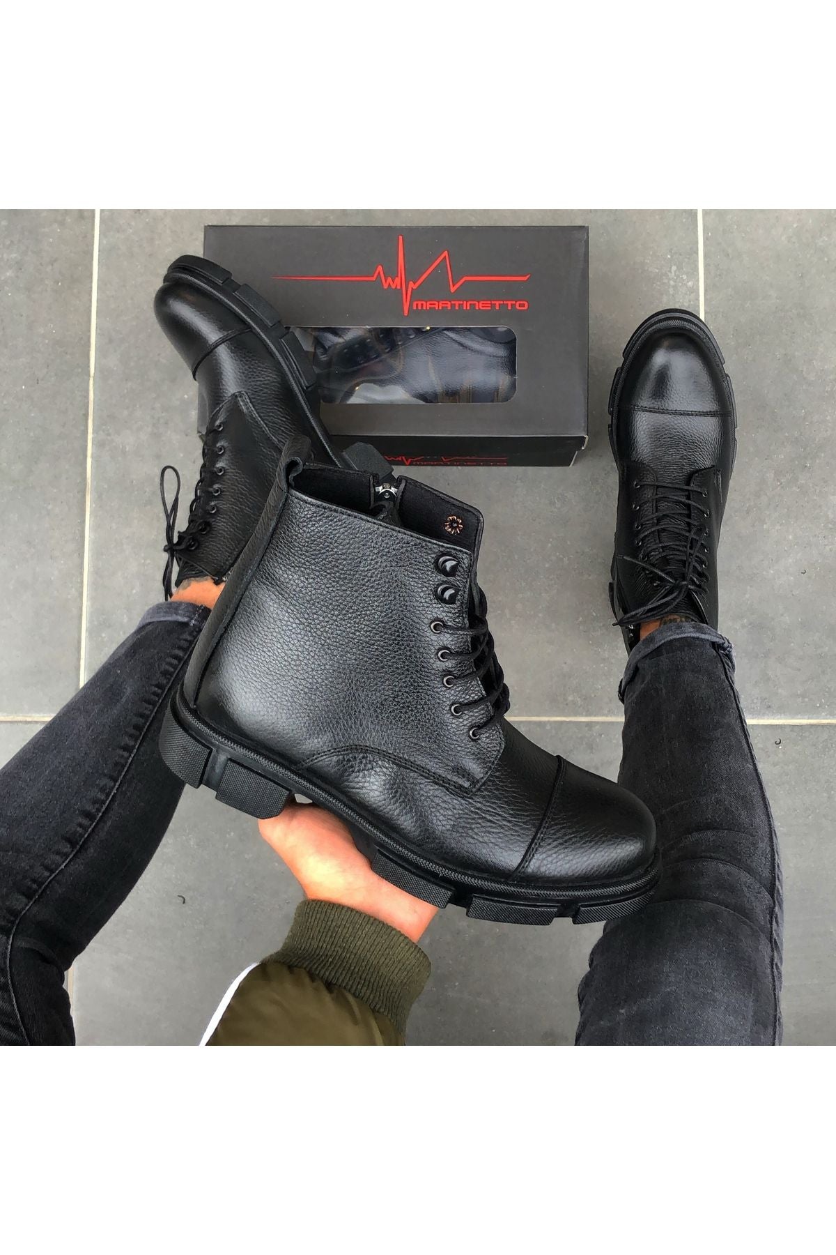 Marka : MARTINETTO Dış Materyal : HAKİKİ DERİ , Burun ve topuk bölgelerinde destekleyici kaplamalar sayesinde sert kış şartlarında bile suya (yağmura ) karşı dayanaklı. İç Materyal : Sıcak Astar Taban : Kauçuk / Kaydırmaz Çok yönlü kavrama teknolojisi ile kendinizi rahat ve güvende hissedebilirsiniz. ; Bağlama Şekli : Bağcıklı ve fermuarlı model ; İç Taban : Ultra yumuşak ve antibakteriyel ortopedik iç taban teknolojisi ile gün boyu rahatlık sağlar. ; Model - Tasarım : Modaya yön veren tasarımcılarımızın çizimlerini , birbirinden yetenekli ayakkabı ustalarının el emeği ile TÜRKİYE 'de üretilmiştir. %100 el imalatı ;
