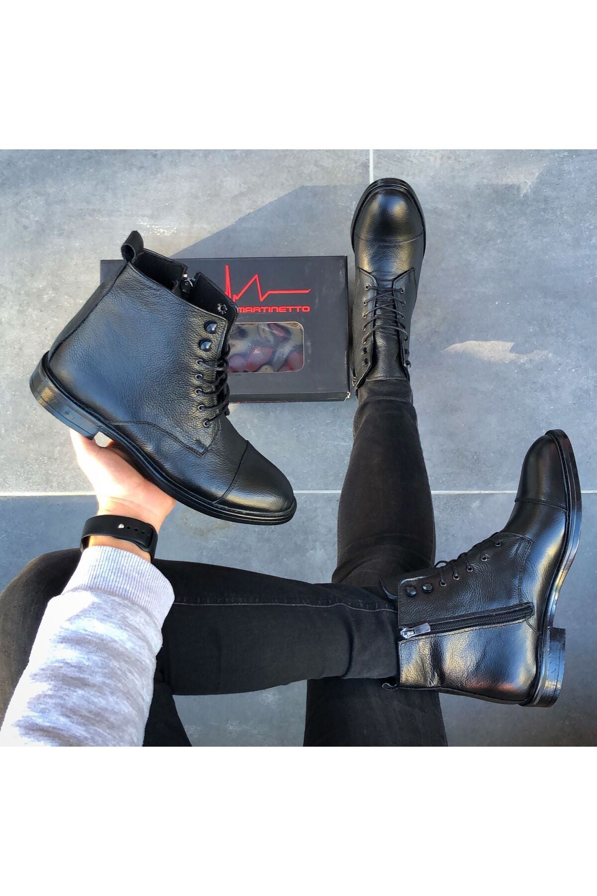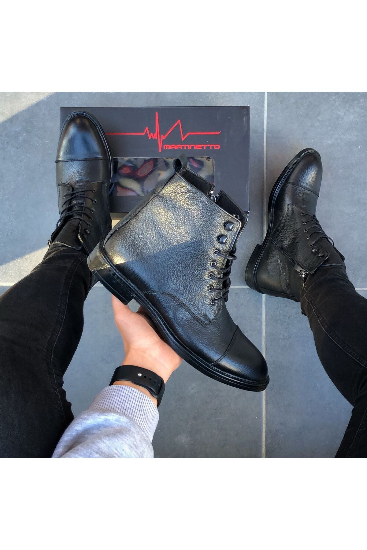 Marka : MARTINETTO Dış Materyal : HAKİKİ DERİ , Burun ve topuk bölgelerinde destekleyici kaplamalar sayesinde sert kış şartlarında bile suya (yağmura ) karşı dayanaklı. ; İç Materyal : Sıcak Astar Taban : Kauçuk / Kaydırmaz Çok yönlü kavrama teknolojisi ile kendinizi rahat ve güvende hissedebilirsiniz. ; Bağlama Şekli :BAĞCIKLI FERMUARLI İç Taban : Ultra yumuşak ve antibakteriyel ortopedik iç taban teknolojisi ile gün boyu rahatlık sağlar. ; Model - Tasarım : Modaya yön veren tasarımcılarımızın çizimlerini , birbirinden yetenekli ayakkabı ustalarının el emeği ile TÜRKİYE 'de üretilmiştir. ; %100 el imalatı.;