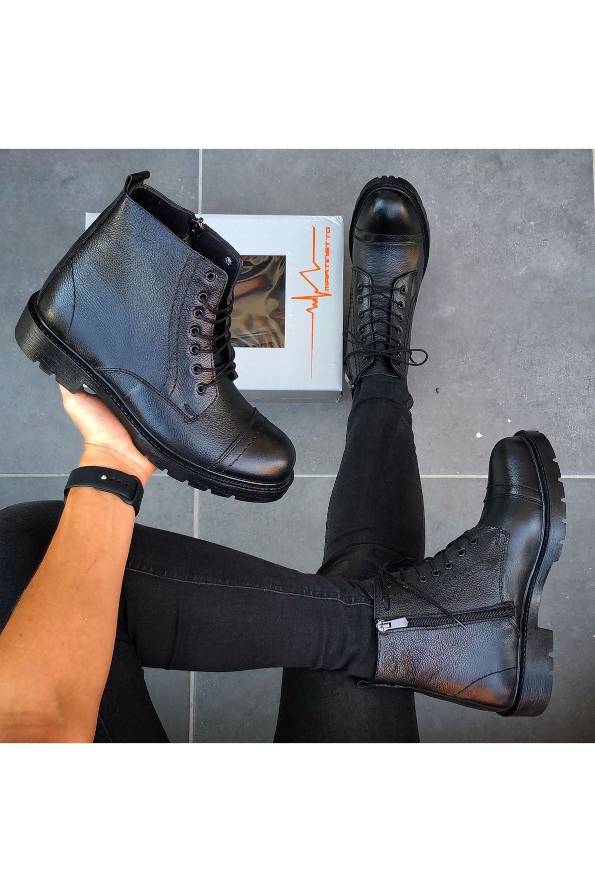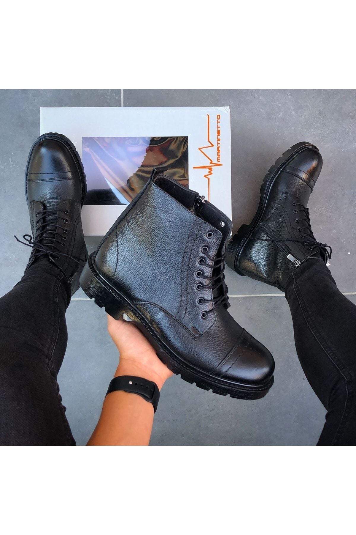 Marka : MARTINETTO Dış Materyal : HAKİKİ DERİ , Burun ve topuk bölgelerinde destekleyici kaplamalar sayesinde sert kış şartlarında bile suya (yağmura ) karşı dayanaklı. ; İç Materyal : Sıcak Astar Taban : Kauçuk / Kaydırmaz Çok yönlü kavrama teknolojisi ile kendinizi rahat ve güvende hissedebilirsiniz. ; Bağlama Şekli : BAĞCIKLI VE FERMUARLI İç Taban : Ultra yumuşak ve antibakteriyel ortopedik iç taban teknolojisi ile gün boyu rahatlık sağlar. ; Model - Tasarım : Modaya yön veren tasarımcılarımızın çizimlerini , birbirinden yetenekli ayakkabı ustalarının el emeği ile TÜRKİYE 'de üretilmiştir. ; %100 el imalatı.;