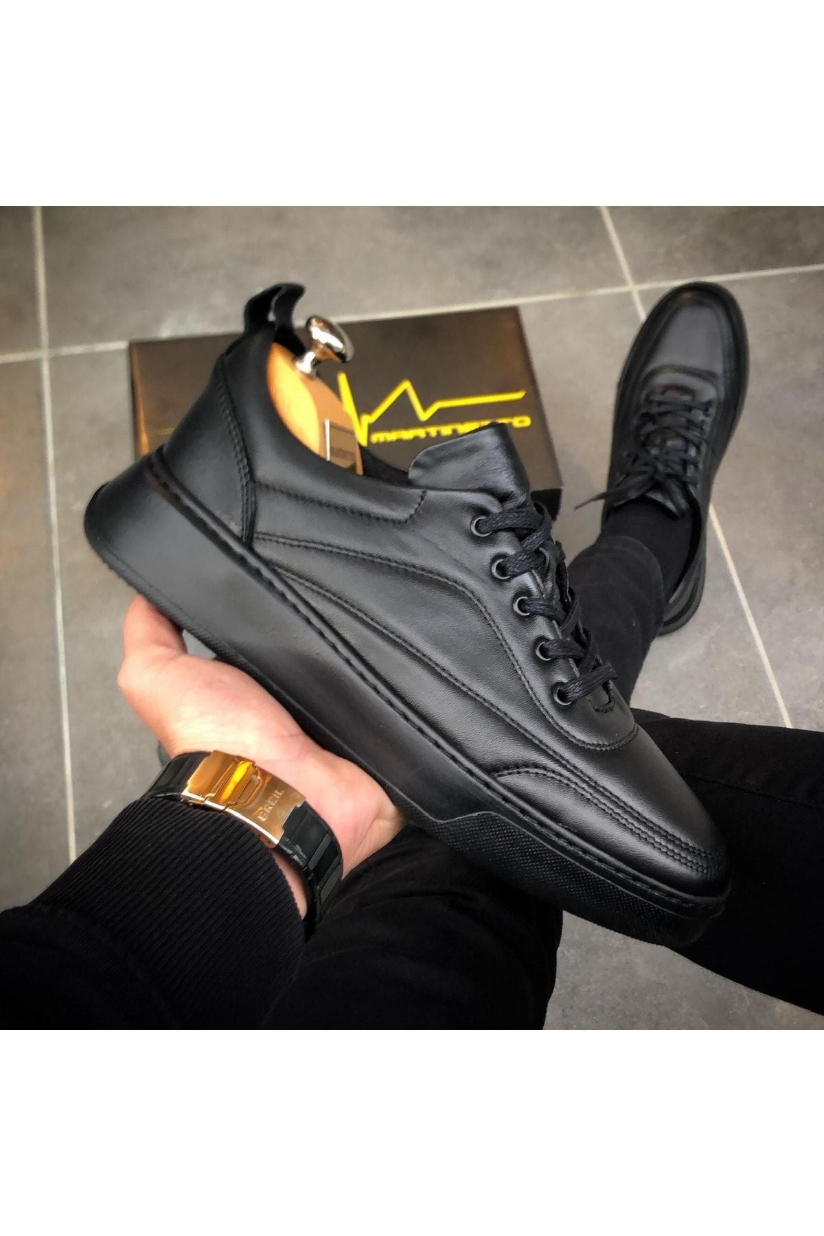 Hakiki Deri Siyah Eva Taban Günlük Erkek Ayakkabı