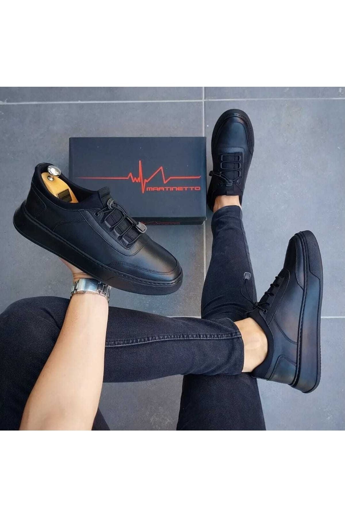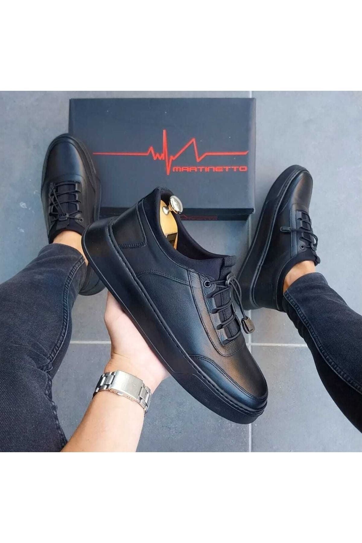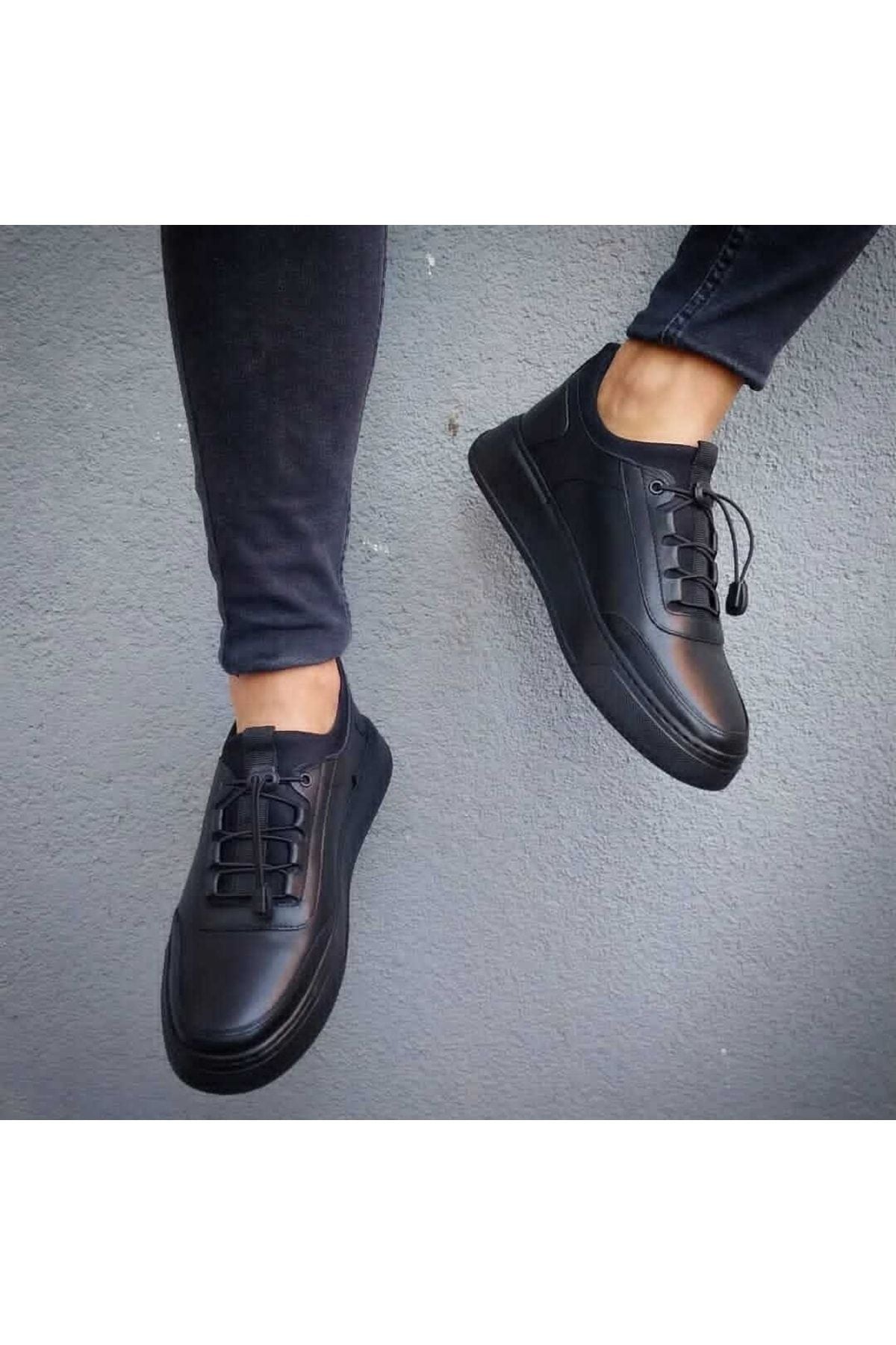 Hakiki Deri Streç Siyah Günlük Ayakkabı