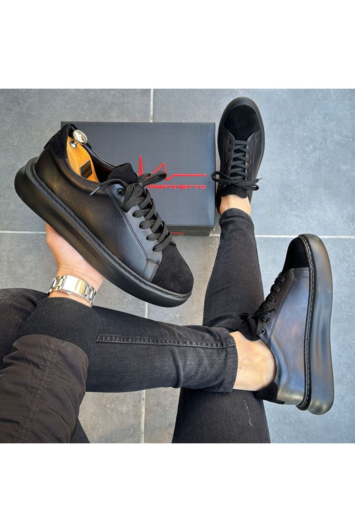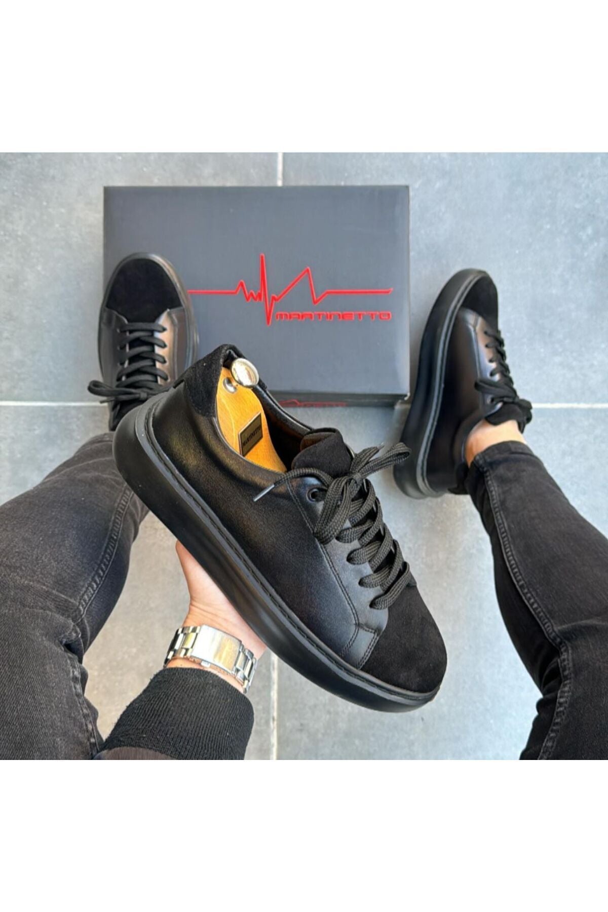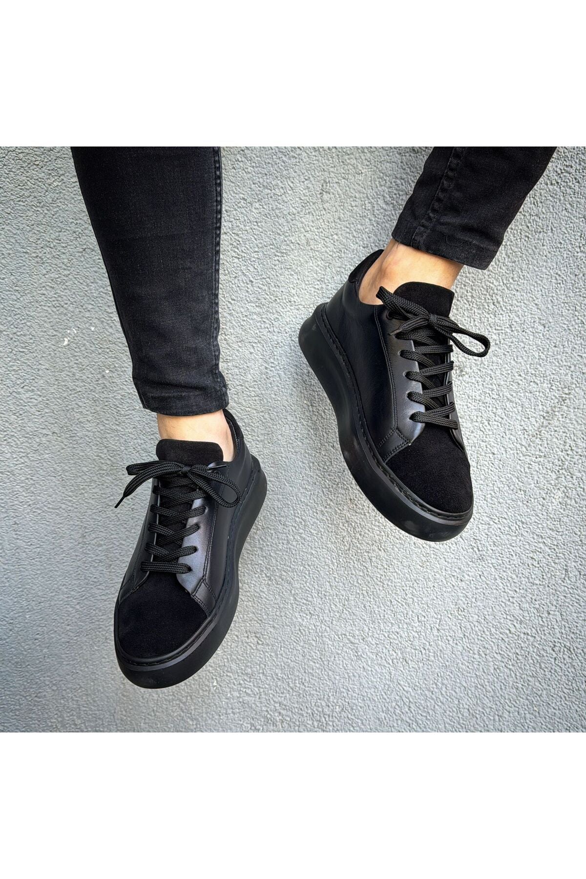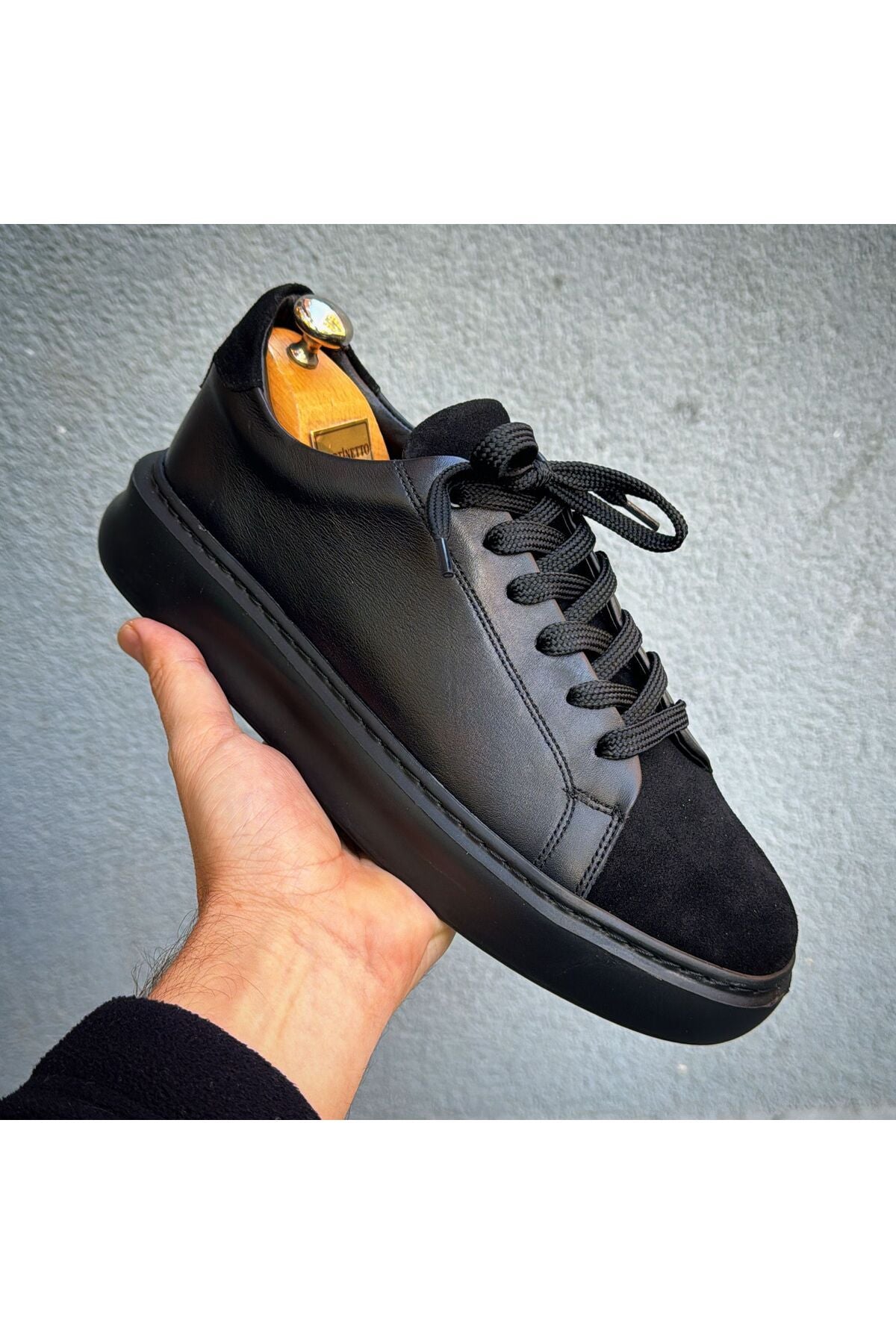 SİYAH ERKEK %100 HAKİKİ DERİ HAKİKİ SÜET SNEAKER RAHAT GÜNLÜK AYAKKABI 009001 SNEAKER