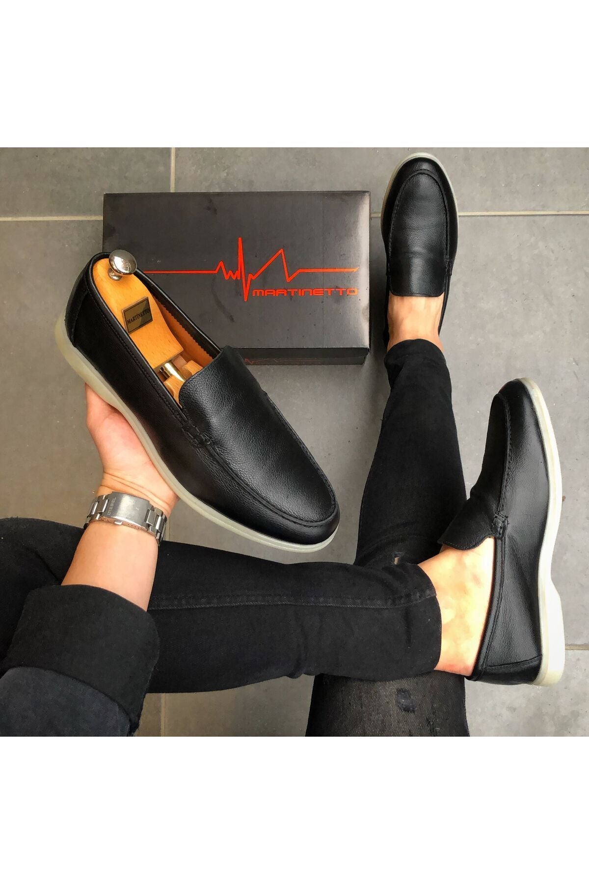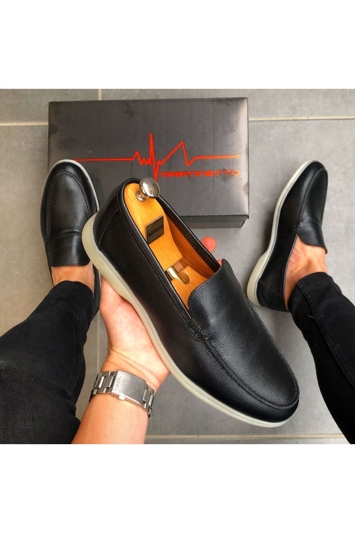 MARKA : MARTİNETTO ; DIŞ METERYAL : % 100 HAKİKİ DERİ ; İÇ METERYAL : ANTİBAKTERİYEL SUNİ DERİ ; TABAN TEKNOLOJİSİ : TERMO JEL İNCE TABAN ; ORTALAMA AĞIRLIK : 800 gr ( 1 çift kutu dahil) ; Modaya yön veren tasarımcılarımızın çizimlerini ,birbirinden yetenekli ayakkabı ustalarının el emeği ile Türkiye'de üretilmiştir. ; %100 el imalatıdır ÜRETİM YERİ : TÜRKİYE Görseldeki erkek mankenin ayak bedeni 40 numaradır. ; Sade çizgileri ve zarif dokulu yapısıyla jean, şort , klasik pantolon, takım elbise ve aklınıza gelebilecek hemen hemen ; bütün giyim parçaları ile uyum sağlayarak stilinizi her ortamda mükemmel hale getirir ;