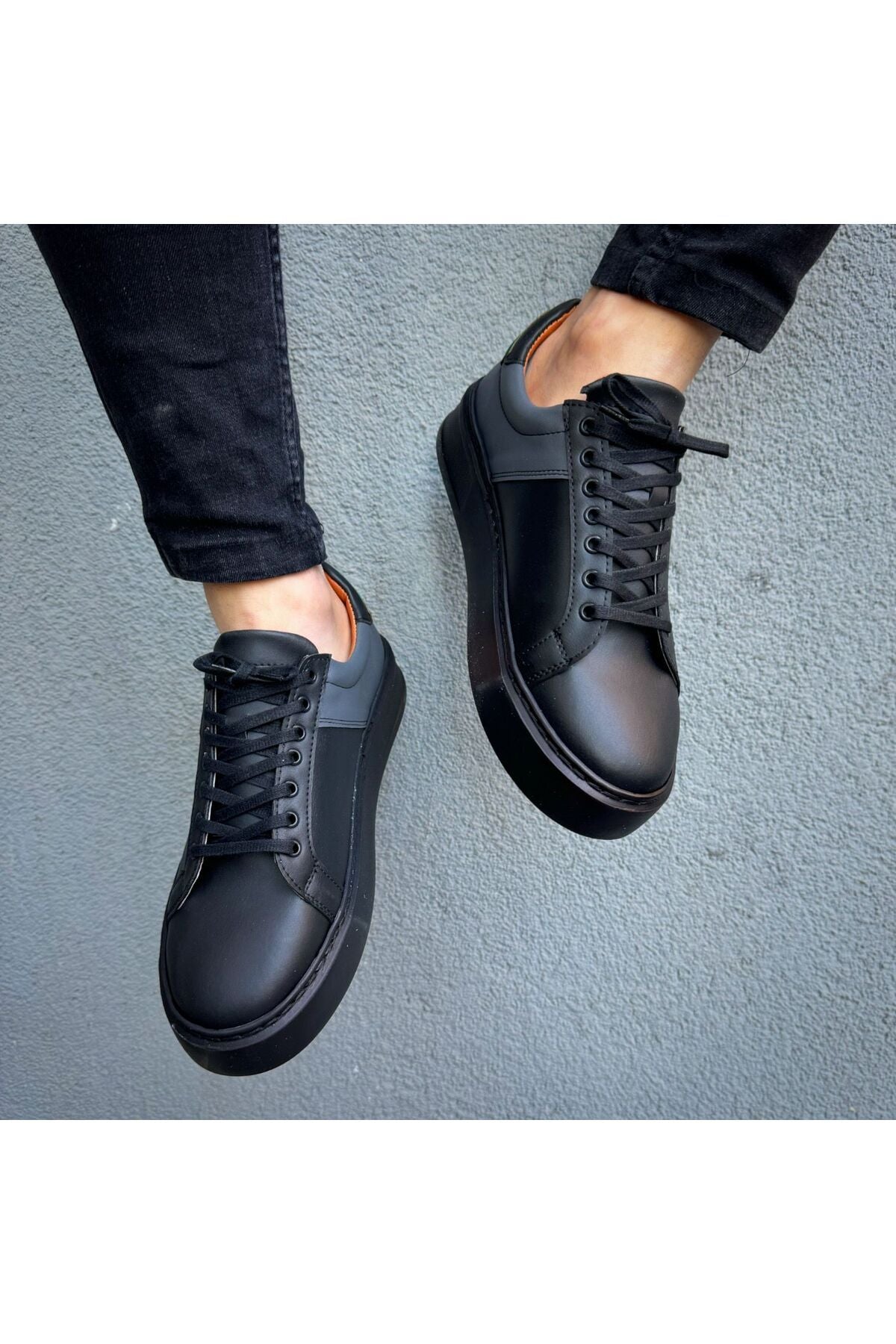 Siyah Cilt Ithal Suni Deri Yüksek Taban Günlük Bağcıklı Erkek Sneaker Ayakkabı Mrt00419