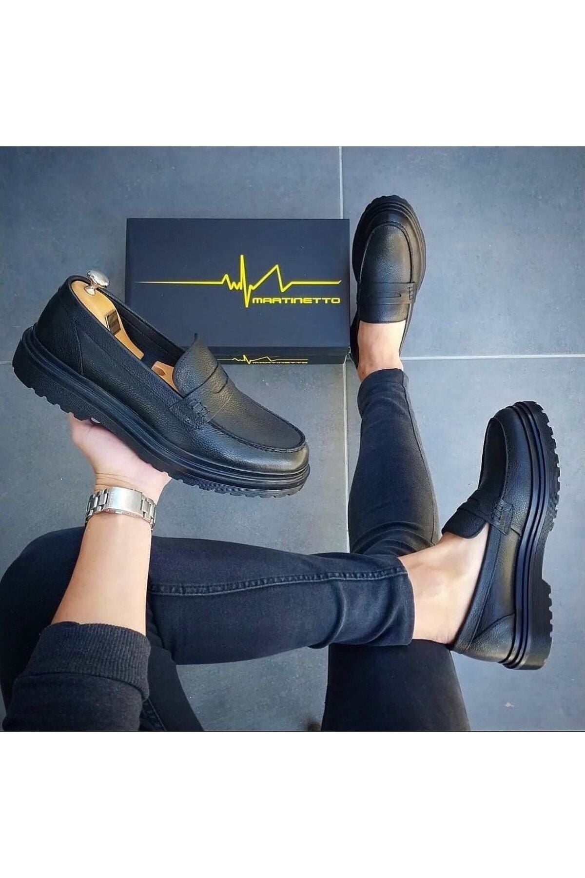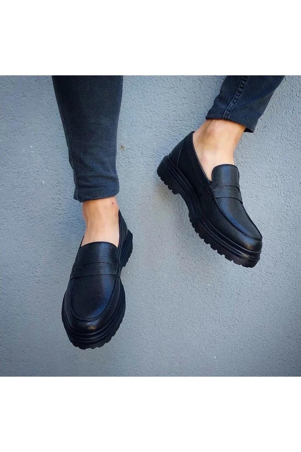 Yeni Sezon Hakiki Deri Siyah Günlük Erkek Ayakkabı