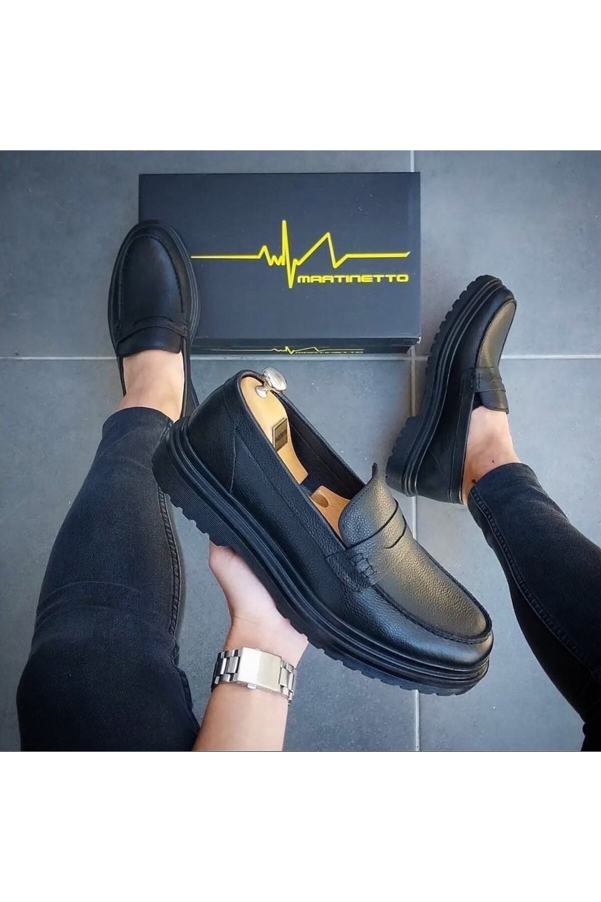 MARKA : MARTİNETTO DIŞ METERYAL : % 100 HAKİKİ DERİ İÇ METERYAL : ANTİBAKTERİYEL SUNİ DERİ TABAN TEKNOLOJİSİ : Vücut ağırlığından gelen basıncı dengeli bir şekilde absorbe eden POLİ malzeme TABAN YÜKSEKLİĞİ : BURUN KISMI 3 CM TOPUK KISMI 4 CM ORTALAMA AĞIRLIK : 850 gr ( 1 çift kutu dahil) Modaya yön veren tasarımcılarımızın çizimlerini , birbirinden yetenekli ayakkabı ustalarının el emeği ile Türkiye'de üretilmiştir; %100 el imalatıdır ÜRÜN KALIP OLARAK 1 NUMARA GENİŞTİR;